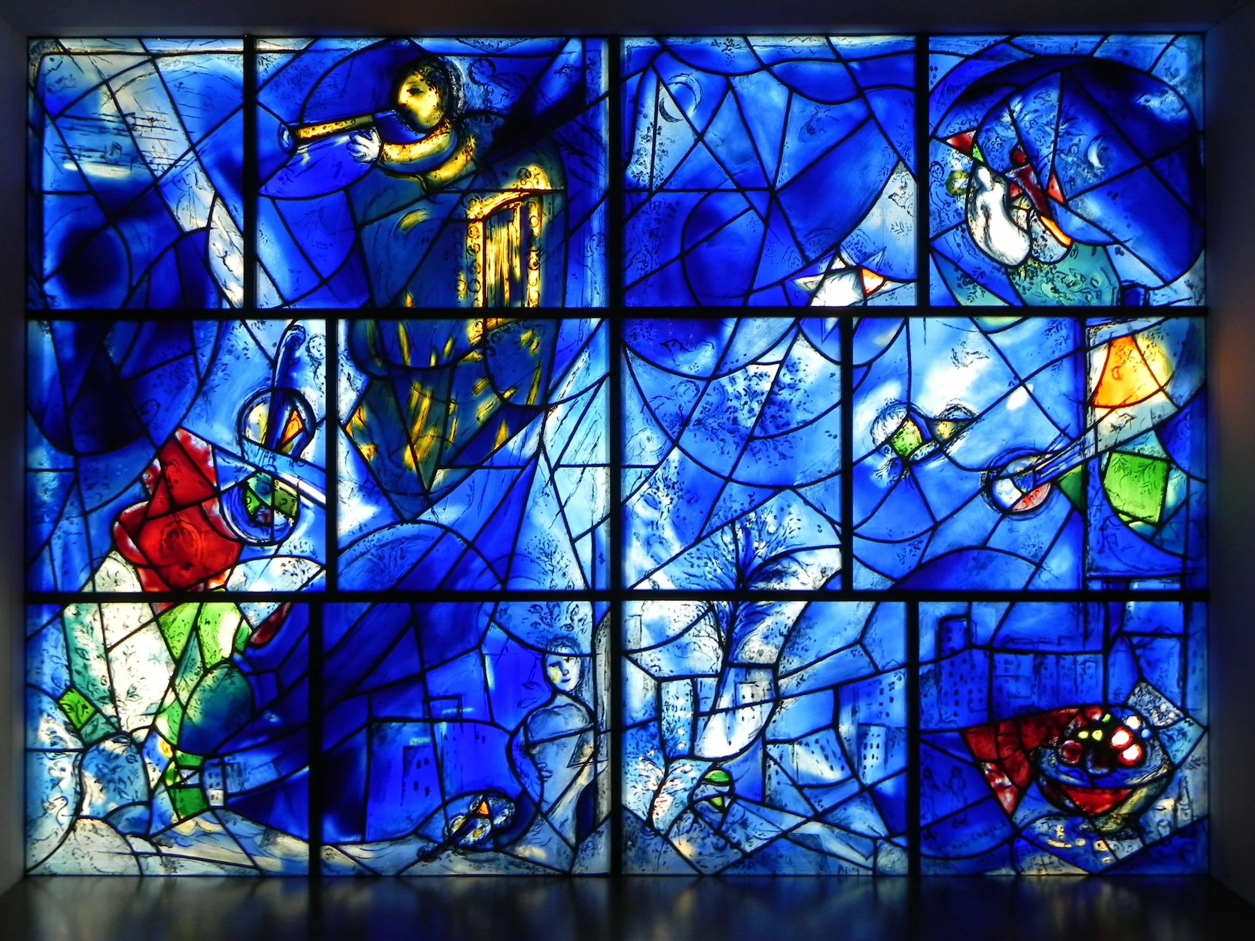 The idea for this piece came during an encounter with “America Windows” by Marc Chagall at the Art Institute of Chicago. My initial reaction to these stained-glass windows was one of peace as I observed the vibrant blue light fill the area. As I looked more closely at each panel, I was most intrigued by the left panel because it was filled with energetic musical images such as fiddles, a trumpeter, and various musical notes. The entire panel seemed both rich with harmony as well as melody. “Blue Radiance” is the result of what I hear when I look at this work of art and reflect on the role of light.