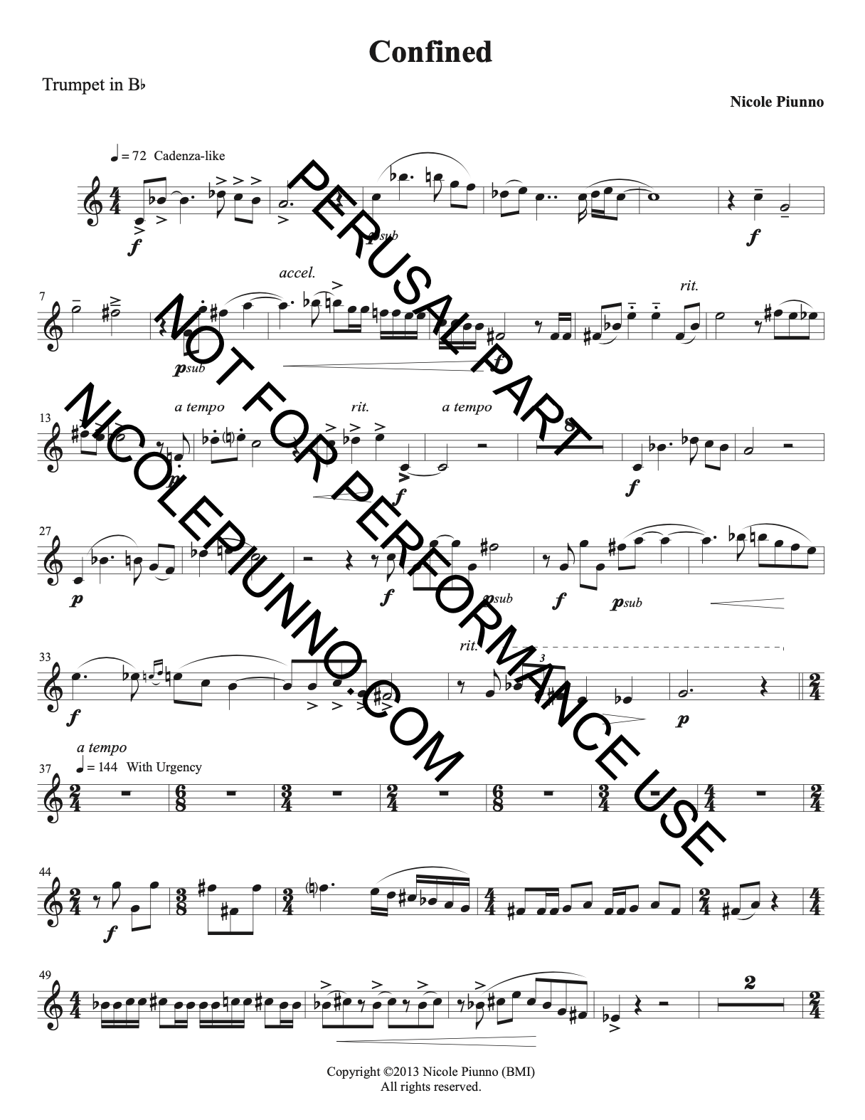 Confined is a piece about experiencing freedom. While writing, I imagined tearing down invisible walls that bind us, allowing grace to enter. For much of this piece, the music is bound by repetitive motives that indicate a sense of fear. This repetitive theme finally surrenders to a lyrical melody that enters toward the end. This melody is a song of freedom. A song of hope.